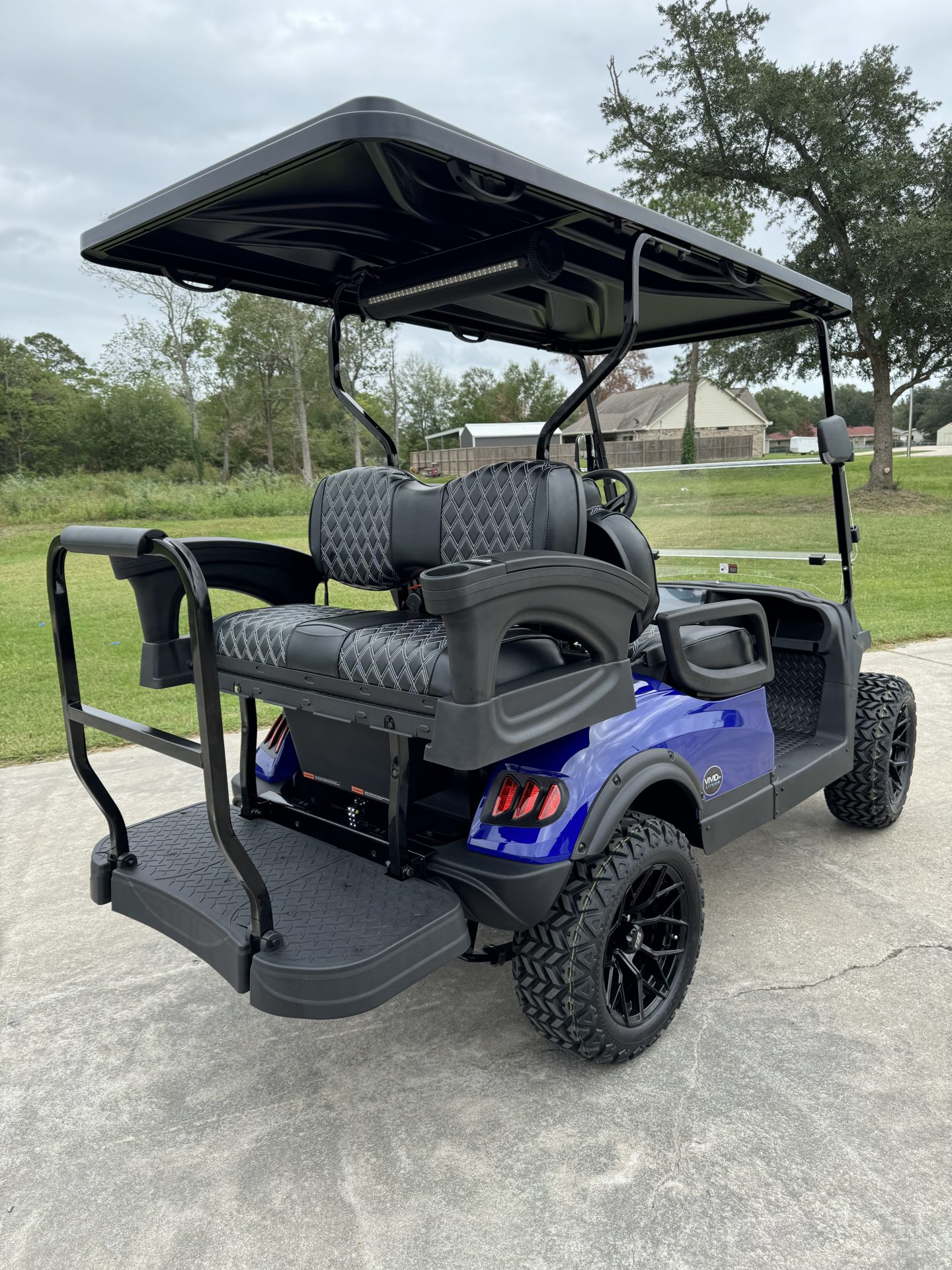 Comes as is for $7995, lithium powered with 8 year battery warranty, plush seats and sound bar included. Has small scratch on side of cushion from shipping. 9″ screen, backup camera, and aluminum frame!